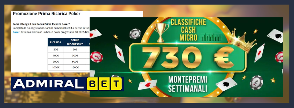 Oltre ai bonus di benvenuto, AdmiralBet propone una serie di promozioni aggiuntive, tra cui bonus dedicati al poker, al bingo e un programma di referenze che permette agli utenti di guadagnare bonus invitando i propri amici.