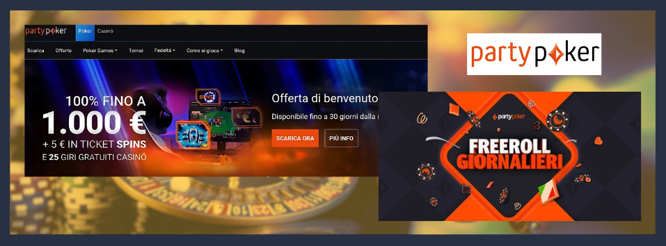 PartyPoker offre inoltre altre interessanti promozioni, tra cui un bonus di benvenuto di 5 euro in ticket per Spins o un bonus del 100% sul primo deposito fino a 1000 euro, riservati ai nuovi iscritti e soggetti a condizioni specifiche. Offerte stagionali, come il Winter Party con tornei MTT garantiti fino a 200.000 euro, arricchiscono ulteriormente l’esperienza di gioco.